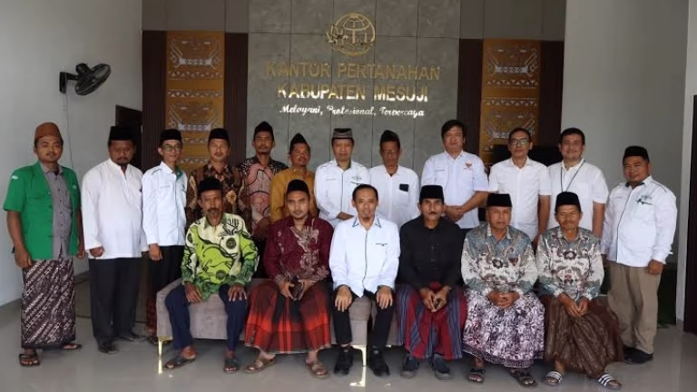 MESUJI, NU MEDIA JATI AGUNG, – Dalam upaya mendukung percepatan legalisasi aset tanah milik Nahdlatul Ulama (NU), Kantor Agraria dan Tata Ruang/Badan Pertanahan Nasional (ATR/BPN) Kabupaten Mesuji resmi menjalin kerja sama strategis dengan Pengurus Cabang Nahdlatul Ulama (PCNU) Mesuji. Kerja sama ini mencakup legalisasi berbagai aset tanah seperti tanah wakaf, pesantren, madrasah, serta fasilitas keagamaan lainnya yang selama ini dimanfaatkan oleh warga NU.