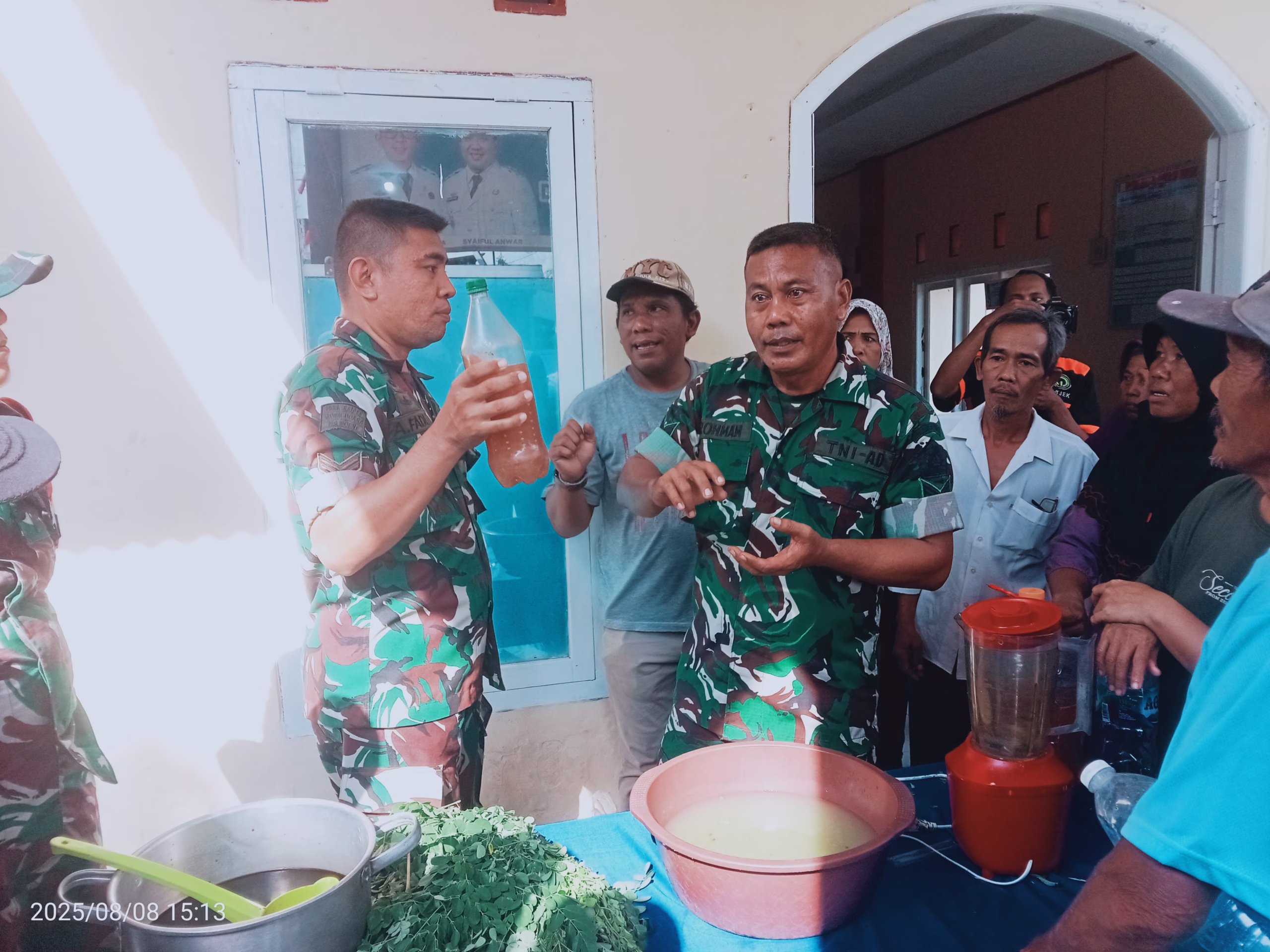Tim mikroba dari Puslatpur langsung mendemonstrasikan cara kerja mikroba PA63 di hadapan peserta, termasuk kelompok tani dan anggota Koramil 421-09/TJB Kodim 0421/Lampung Selatan.