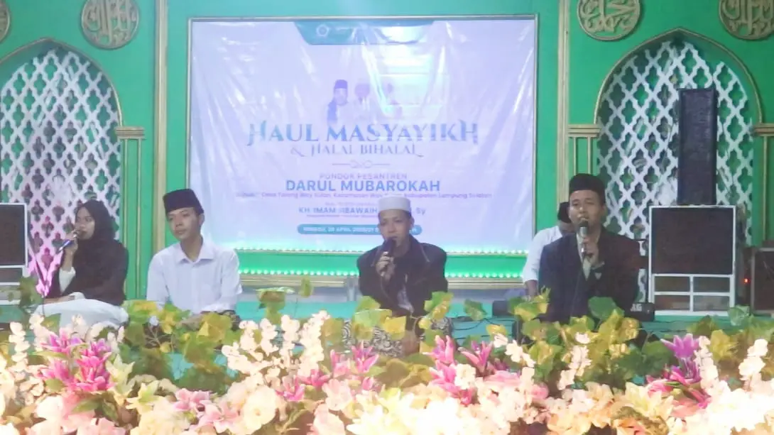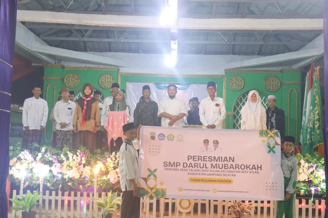 Lampung Selatan, NU MEDIA JATI AGUNG, – Ribuan jamaah memadati halaman Pondok Pesantren Darul Mubarokah di Banusiri, Desa Talang Way Sulan, Kecamatan Way Sulan, Kabupaten Lampung Selatan, Minggu malam (20/4/2025), dalam rangka menghadiri rangkaian acara besar bertajuk “Ngaji, Ngopi, Haul Masyayikh dan Halal Bihalal”, yang sekaligus dirangkaikan dengan peresmian SMP Darul Mubarokah.