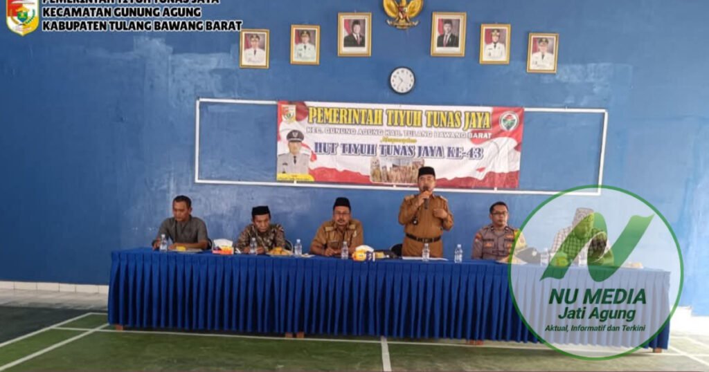 TULANG BAWANG BARAT, NU MEDIA JATI AGUNG, – Acara tasyakuran HUT Tiyuh Tunas Jaya ke-43 menghadirkan jajaran pemerintahan, tokoh masyarakat, serta berbagai elemen yang selama ini berperan aktif dalam pembangunan tiyuh. Selain itu, acara ini juga memperkuat kebersamaan antarwarga.