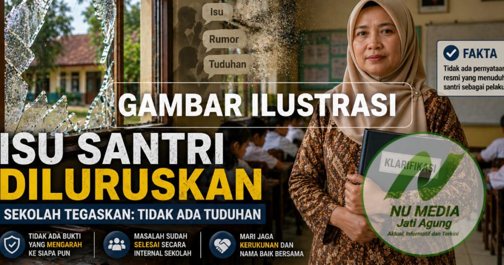 โKita nggak tahu ya, sekolah kan sampai siang. Besoknya kita datang, kaca itu sudah bolong. Kita juga tidak melaporkan ke mana-mana, hanya ke komite,โ ujarnya kepada NU Media Jati Agung, Sabtu (26/4/2026)