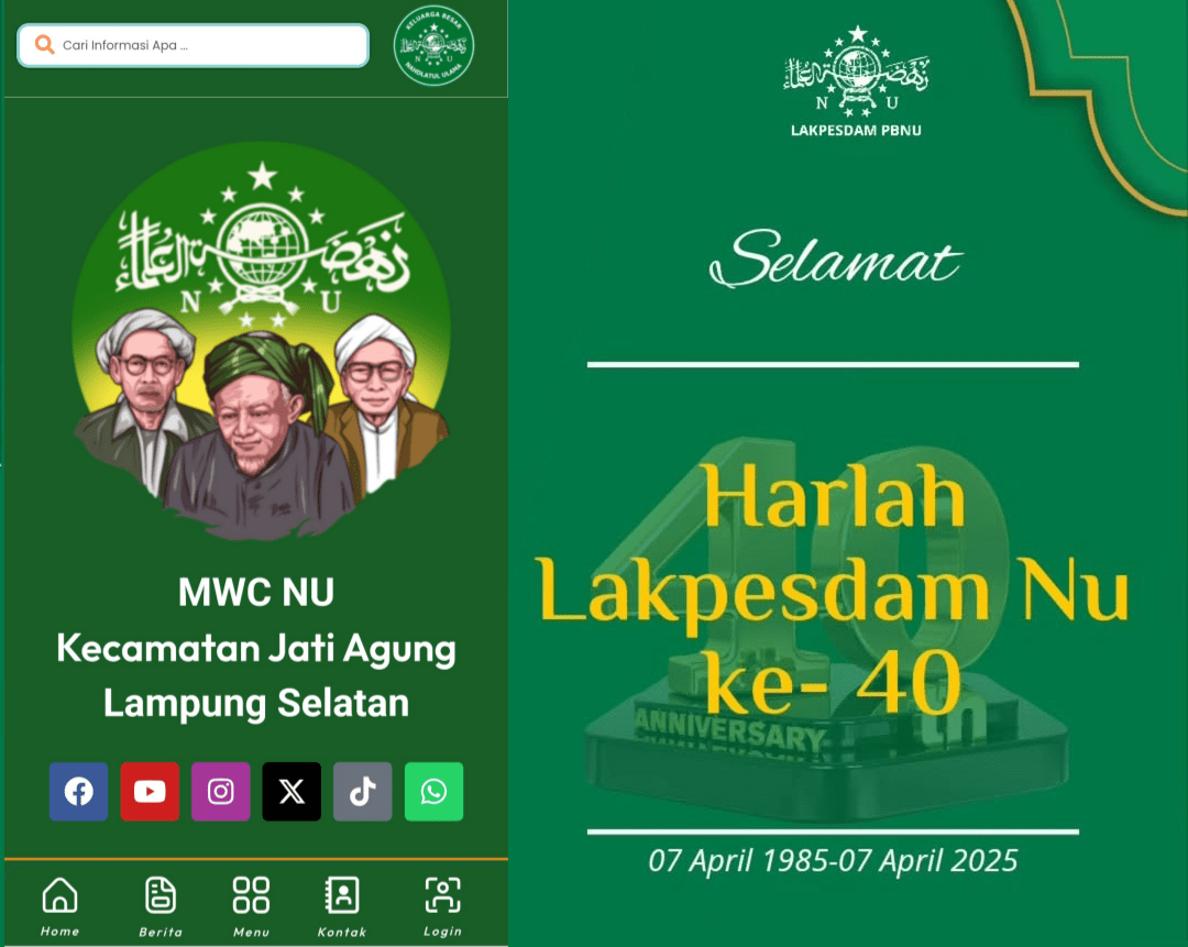 Jati Agung, MWCNU Jati Agung Lampung Selatan , – Majelis Wakil Cabang Nahdlatul Ulama (MWC NU) Jati Agung, Lampung Selatan, menyampaikan ucapan selamat dan doa terbaik atas Hari Lahir ke-40 Lembaga Kajian dan Pengembangan Sumber Daya Manusia Nahdlatul Ulama (Lakpesdam NU), yang diperingati pada 7 April 2025.