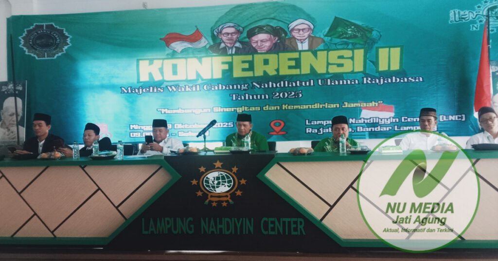 Bandar Lampung, NU Media Jati Agung – Majelis Wakil Cabang Nahdlatul Ulama (MWCNU) Kecamatan Rajabasa, Kota Bandar Lampung, menggelar Konferensi Ke-II Tahun 2025 dengan mengusung tema “Membangun Sinergitas dan Kemandirian Jamaah”.
