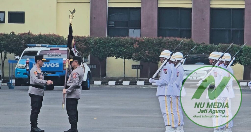 Bandar Lampung, NU Media Jati Agung — Kepolisian Daerah Lampung menggelar upacara serah terima Pataka Wira Bhakti Ruwa Jurai dari Irjen Pol Helmy Santika kepada Irjen Pol Helfie Assegaf pada Senin (3/11/2025) di Mapolda Lampung.