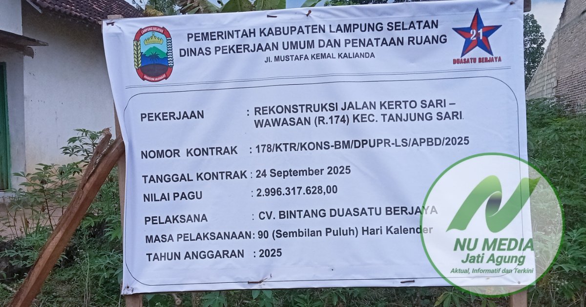 Lampung Selatan, NU Media Jati Agung — Publik menyoroti proyek jalan Kertosari–Wawasan di Kecamatan Tanjung Sari, Kabupaten Lampung Selatan.