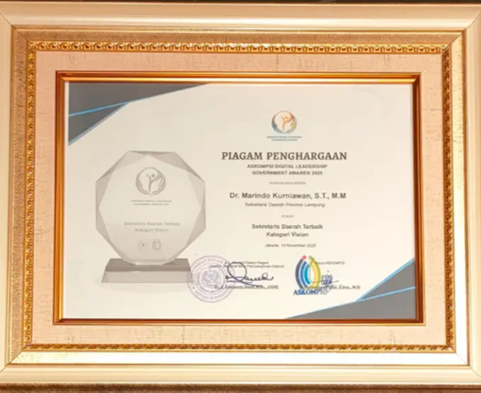 Penghargaan ini sekaligus menegaskan posisi Sekdaprov Lampung sebagai pemimpin visioner yang mendorong transformasi digital.